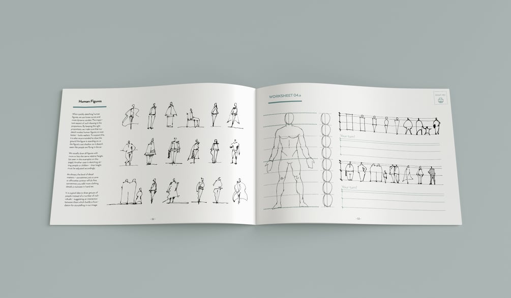 The 100+page easy-to-follow PDF Handbook explaining a step-by-step process of how to learn or improve at architectural sketching.
