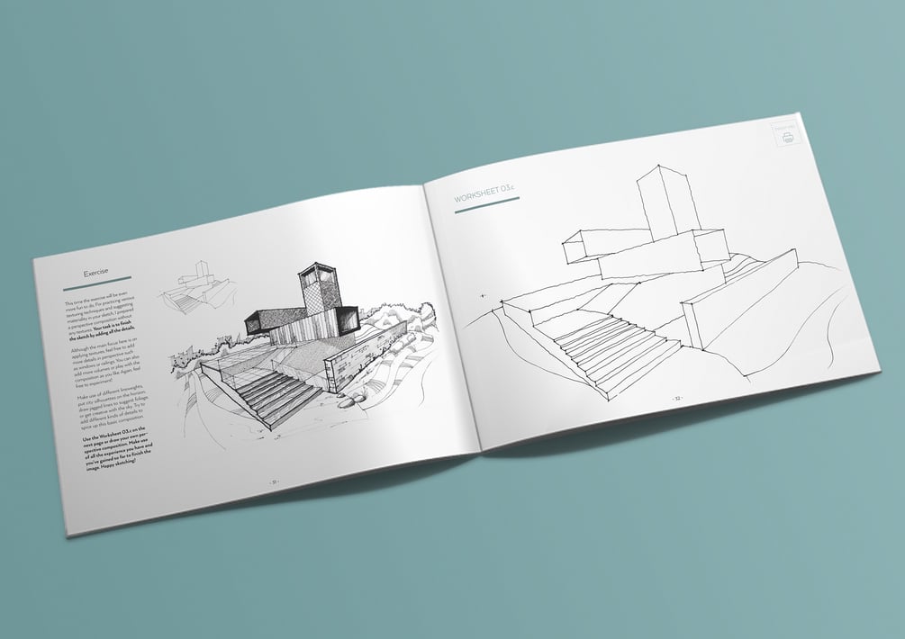 The 100+page easy-to-follow PDF Handbook explaining a step-by-step process of how to learn or improve at architectural sketching.