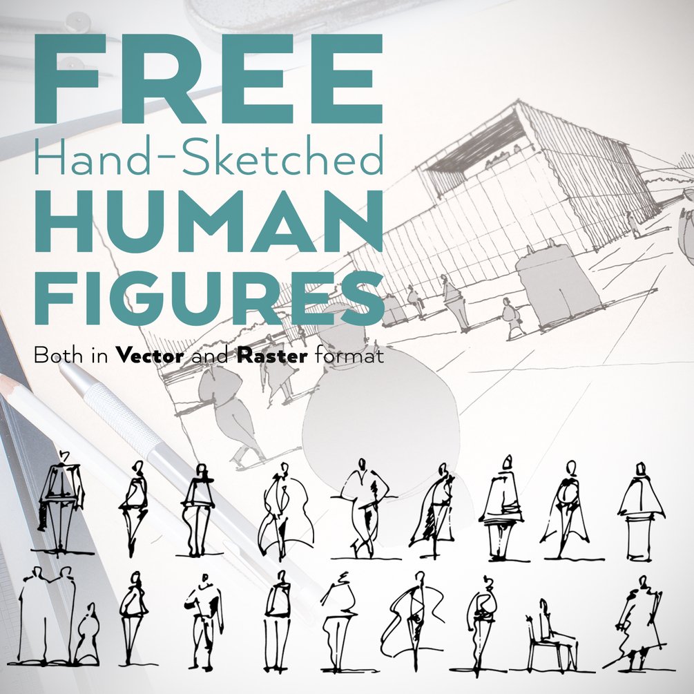 Vector and Raster Files of 18 Hand-Sketched Human Figures